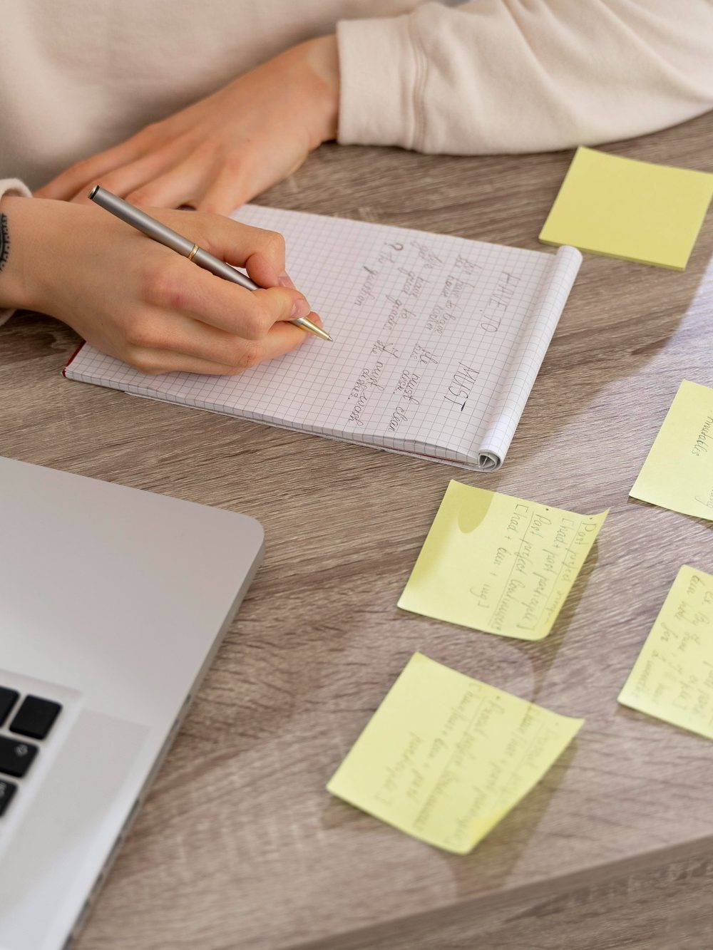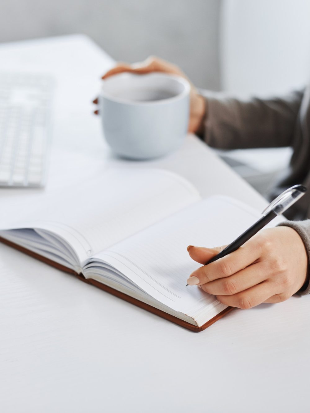 Photo: cookie_studio. « Un emploi du temps m’aide à organiser ma journée, femme qui travaille devant un ordinateur en écrivant dans un carnet de notes ». Freepik, https://www.freepik.com/free-photo/schedule-helps-maintain-my-day-cropped-shot-woman-working-front-computer-writing-notebook-drinking-coffee-businesswoman-makes-plan-her-meeting-day_8357880.htm.